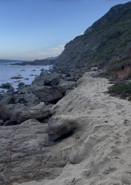 Le ciel s’embrase dès l’aube, entre orange incandescent et bleu limpide. L’île d'Elbe surgit comme une ombre chaude au-dessus d’une mer immobile